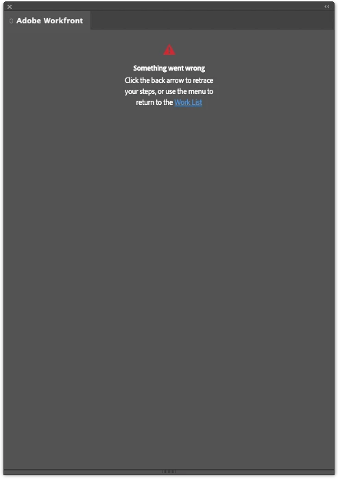"Something went wrong Click the back arrow to retrace your steps, or use the menu to return to the Work List"