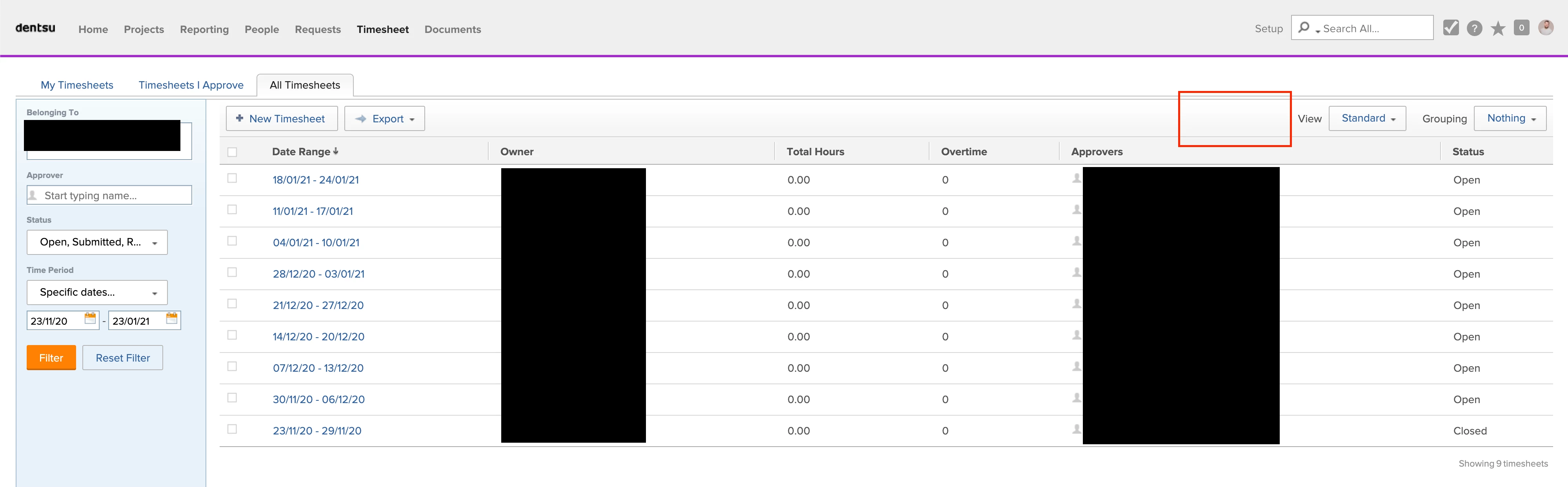 All Timesheets - Filter Functionality
