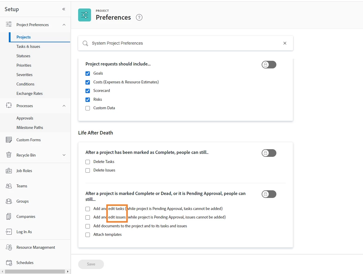 Description - Allow System Admins to update custom fields on closed projects.
