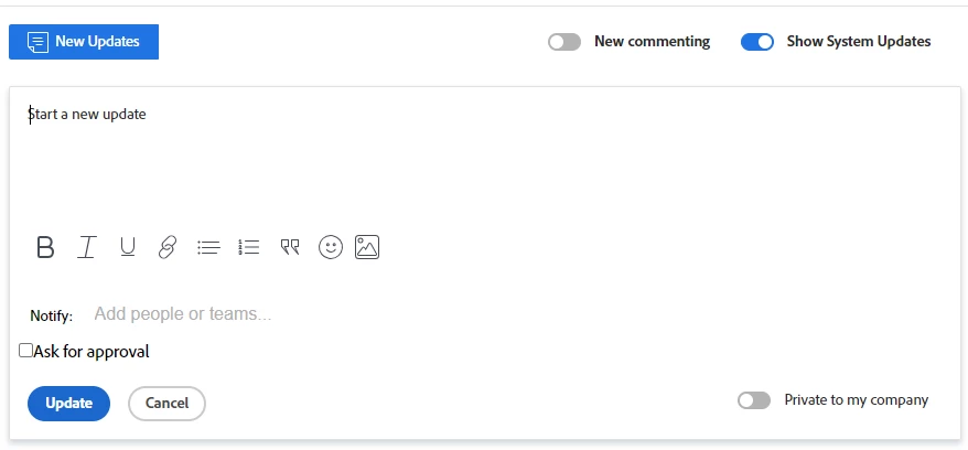 Hi Kathy - thanks for the screen shot that helps. You can't turn the new commenting on or off from the popup window - you have to do it from the actual updates area. If you turn it off there it will turn it off for the pop up as well. This should allow you to send approvals through comments again.