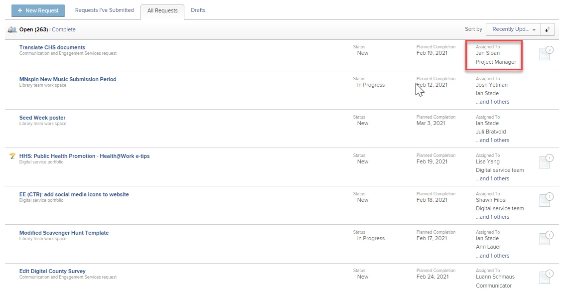 With the 21.1 release the all requests/submitted requests view was changed and now I can no longer see the "assigned to" column when viewing all requests in the request queue. We have multiple people trafficking the request queue so it's helpful if we can see who has picked up a request and assigned it out to our users and our teams. With the way the interface is now displaying requests, the only way to see who is assigned to a request, is to open the request. This is time consuming. We can't see the assignments at a glance.