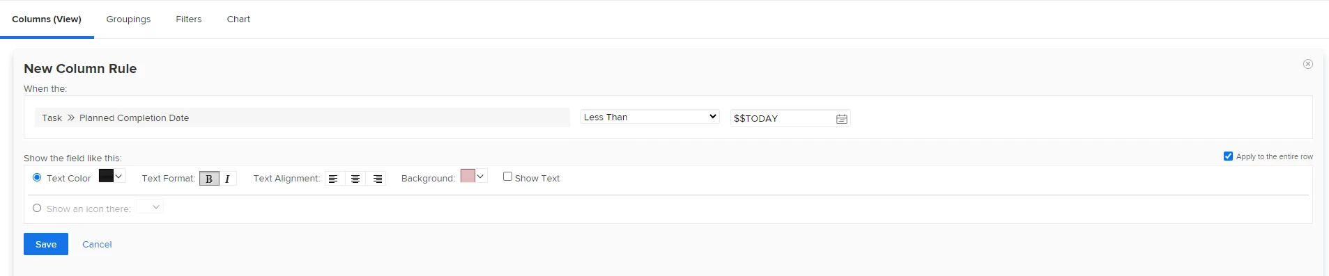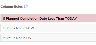 I'm working on an Assignment report where I'd like the row to be red if all the following conditions are met, but it looks like I can create only one column rule. Thanks in advance for your help!