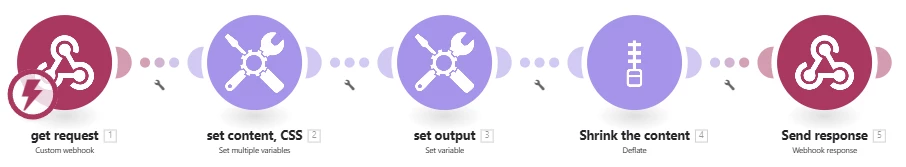 Regardless of what the upper branch does, it will result in "output" - whatever the HTML content is. The bottom part gets this variable, it's also where we maintain the CSS and Javascript, and we combine everything into the HTML "template", zip it, and send it.
