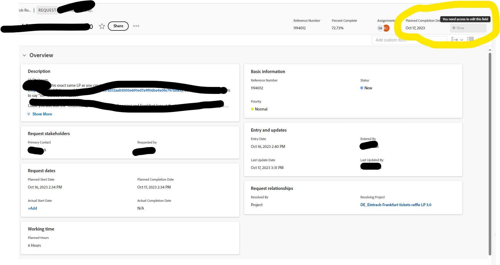 cant edit a status in a request - why?