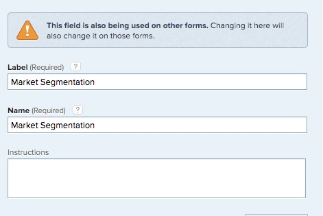 One team calls the field "Market Segment" while another wants to ask the question "Which Market Segment are we targeting?" to better help their requesters. It's the same list value to maintain from an administrator perspective but helps the team get the right questions answered from their stakeholders.