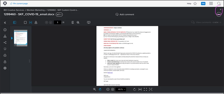 The "Close” button on the proof viewer is far too small. See pink circle.
