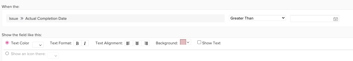 @kayleerichard Here is the code you can use to get the desired highlight if actual completion date is greater than the planned completion date.