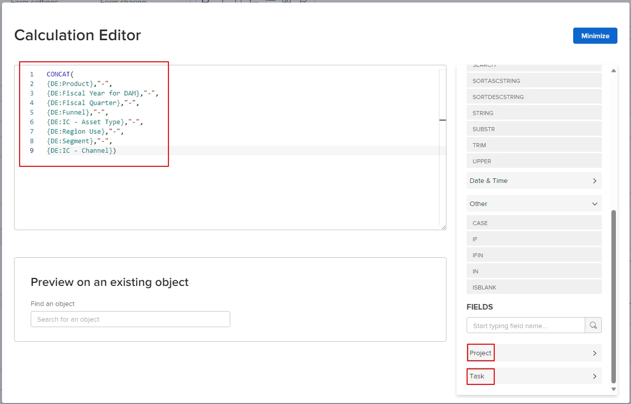 In your example, let's say that the 'DE:IC - Channel' field were actually on your Project object, you would alter the formula to read as below.