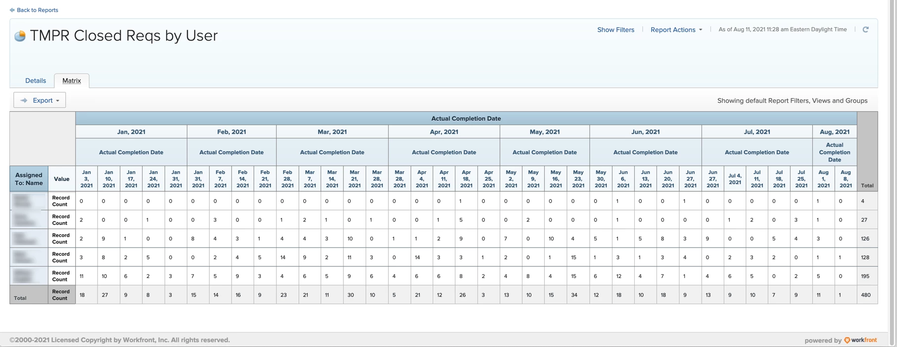 Create Chart/Report for Average Requests Completed by Resource by Week and Month