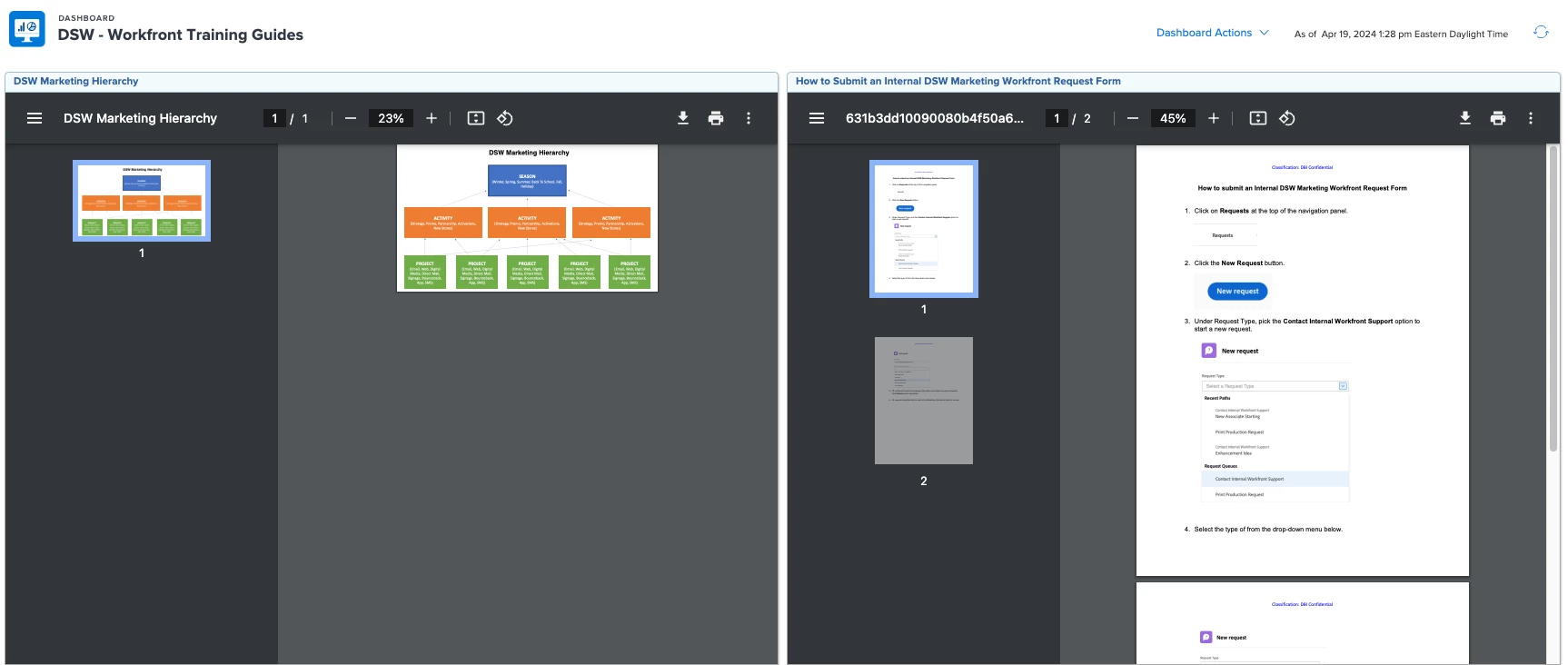 We are contemplating putting policies/procedures currently offline into Workfront. We hoped to use the Documents section of the tool to have a single place where all users can go and access them, and then pin that page to their layout templates.