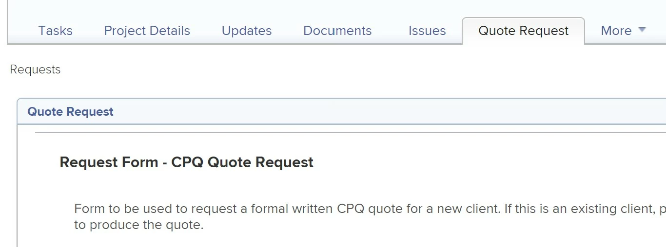 There is a request tab inside every project but I can't see how I can set up the queues so that you can make a request from inside an existing project and get the proper forms, get it routed etc.