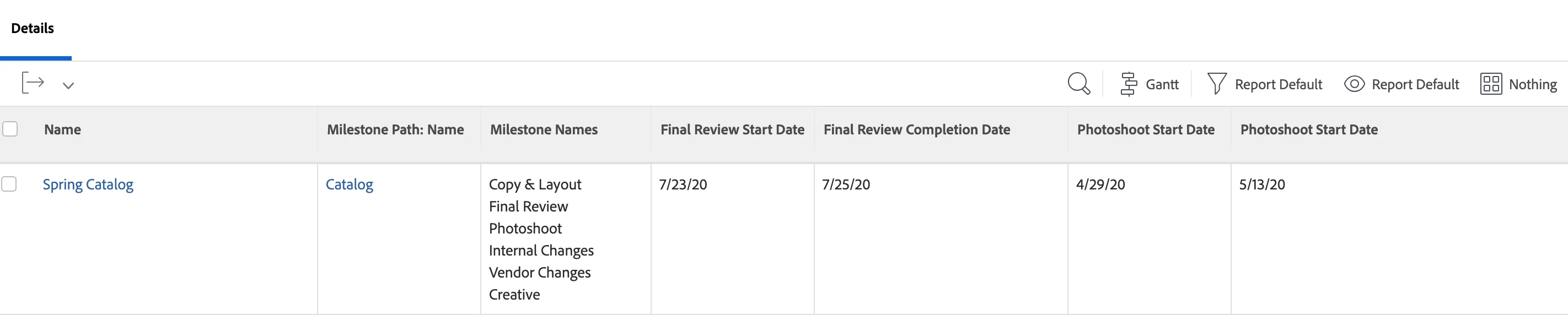 @jordanbray You can - it would just require a handful of custom text mode collection columns on a project report. If you add the following text mode column to your project report, this will show you all the names of the milestones within that project (basically the details of the milestone path):
