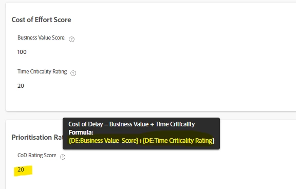 SUM({DE:Business Value Score},{DE:Time Criticality Rating})