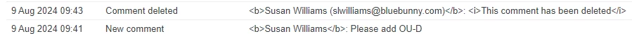 It would be very helpful if someone has commented on a proof, then deletes their comment because it's not need anymore or they were mistaken, that the comment does not show up in the updates section OR has a line through it, something to show it was deleted. We have had a few times where people have left comments on a proof and then decided they weren't need anymore so they delete the comment, it doesn't show up on the proof, but it still shows up in the updates section. Without going into proofing activities, we have no way of knowing that the comment was deleted and think it still pertains to the current proof. It would be really nice if the comments are deleted, they are deleted everywhere, but if not possible, they have a red checkmark, line through them or something that would show in the updates, that this was deleted as well.