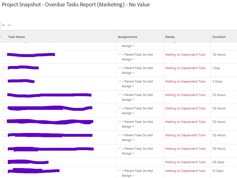 Dont include "Parent Task- Do not Assign" on Overdue Task Reports