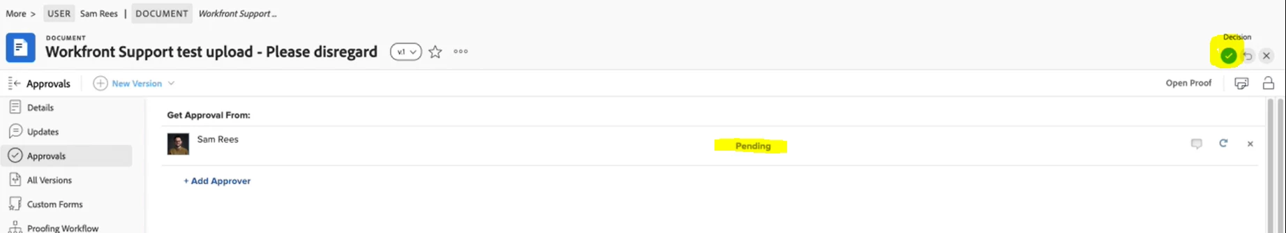 Current Behaviour - when a document approval is provided the check mark turns green but the status stays as pending, so the reviewer clicks the check mark again which actually retracts the approval. Email notifications trigger to the project owner but when they check the document approval they see it as pending, it also remains in the reviewers work list as pending.
