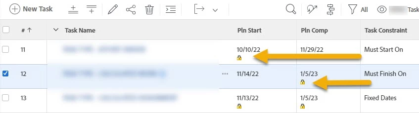 Easily Add Task Constraint Icons on Planned Start and Planned Finish Dates (Task)