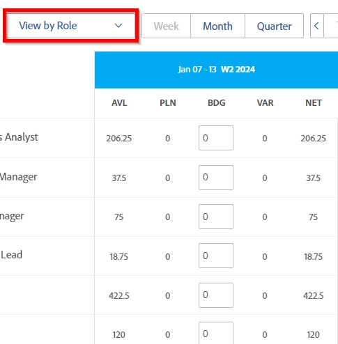 Include 'Actual Hours' column in both the 'View by Role' and 'View by Project' views of the Resource Planner. This would show how much time was actually spent on each role or project, in addition to the other metrics like Available, Planned, Budgets, etc (as shown below). At least gives this as an option in the settings.