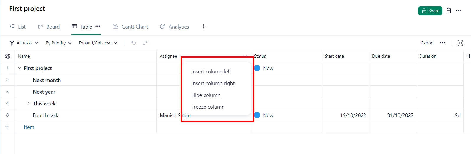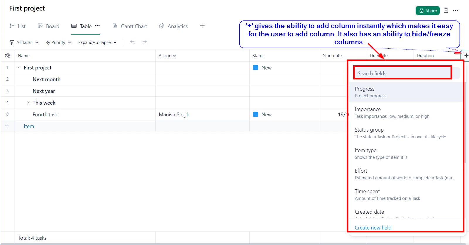 Description - Give an option to add/hide columns instantly. See screenshot (image taken from another PPM tool)