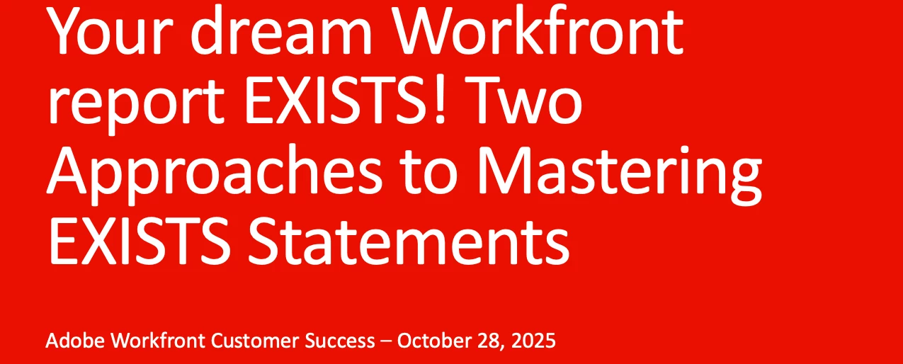 [Event Follow-Up] Your dream Workfront report EXISTS! Two Approaches to Mastering EXISTS Statements