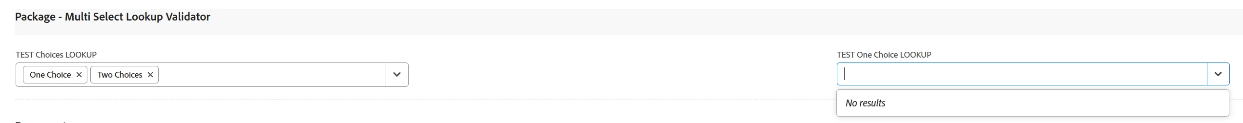 1. Muti-select inputs on a lookup preceding another lookup (dependent field) will output a string result (like other multi-selects) instead of an array to which individual selections on subsequent lookups or validators might not evaluate as "True" because of the format. (e.g. trying to match "California" to "California" works, but selecting California and Connecticut outputs "California,Connecticut" which fails validation.)