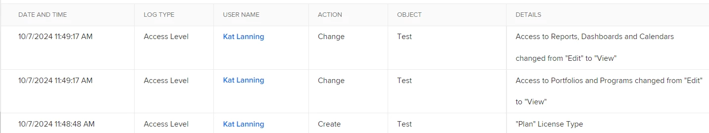 Can anyone help me how to find who changes a user access level and which date its changes , I also check an audit log but i could not find anything to get enough information .