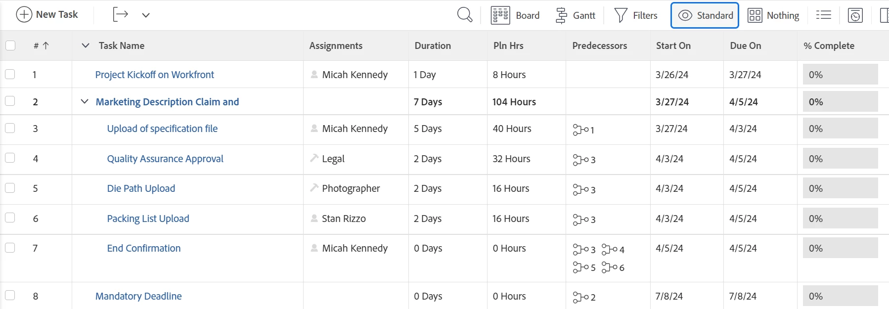 - give the assignee that will receive 50 identical tasks for different projects, the ability to schedule them in the allocated time, moving them around with a clear undrstandin of the mandatory deadline of each task.