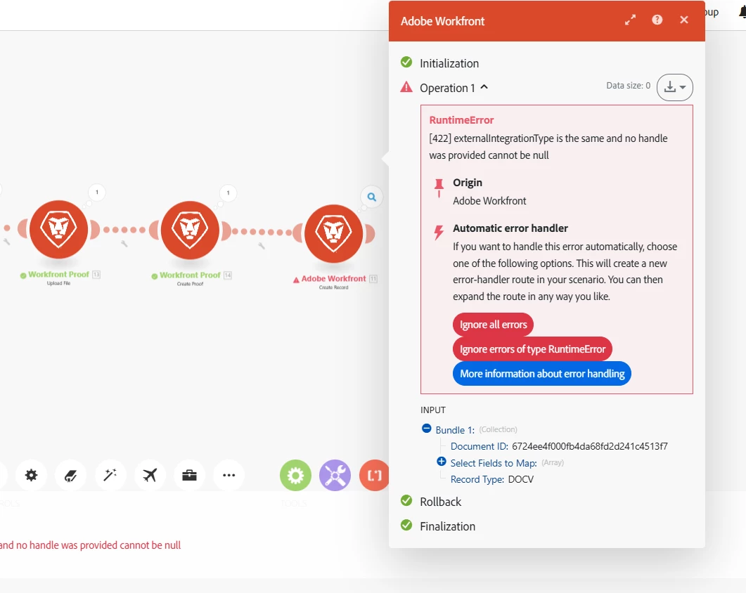 This is not a common error and I haven't seen this before when helping customers. I highly recommend that you open a support case with our team so that we can troublehsoot this further as we will need to gather some information about your account, gain access to the scenario, and check the error logs for more information.
