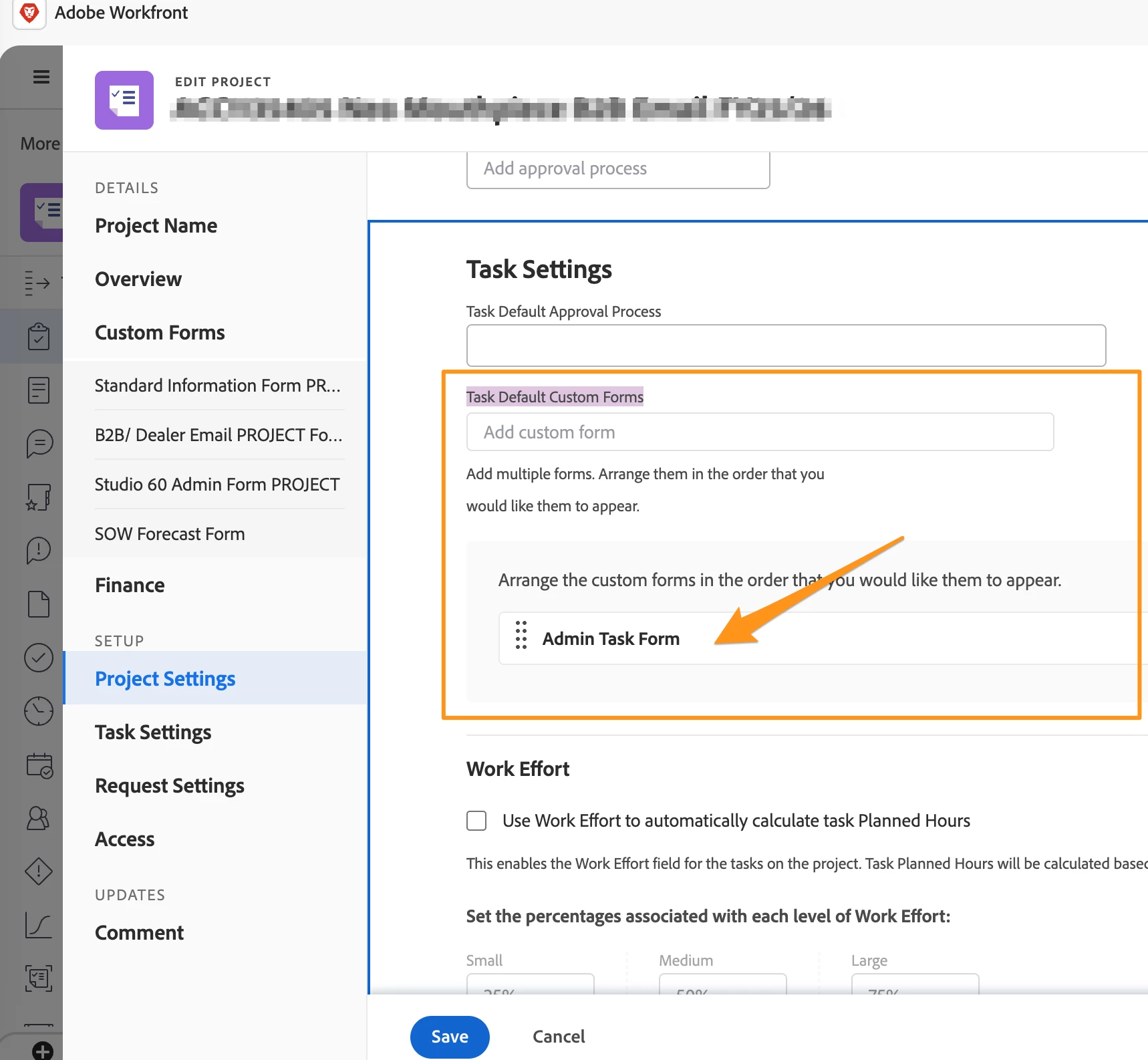 Getting Project Settings-Task Default Custom Forms to show on a report