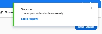 - the toast panel suggests to "go to request"