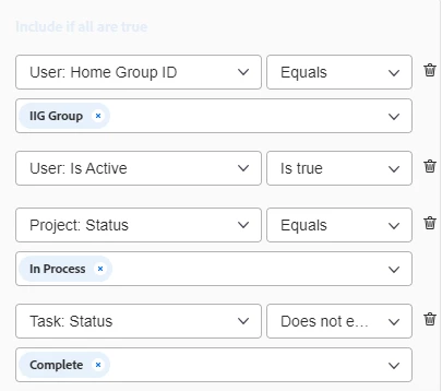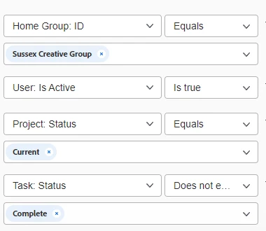 Hi, I have the below filter set with these filters included that I want to use from the /resourcemanagement/scheduling page (waffle > Resourcing > Workload Balancer). I want to pull in work assigned to anyone in this particular home group. When I save and apply the filter, it is still showing me a ton of people that do not belong to this Home Group. I want to use this option instead of having all the users in this Group as part of a Team/using the balancer from the Team page for certain reasons. Is this a bug that it's pulling many people outside of this Group? I've already verified they are definitely not part of this group. Would like to use this filter instead of 'assigned to' and list out each name since this is a large group and it will be less upkeep if I just associate it with home group instead of individual users. 'Assignment users' isn't a filter option either, only has 'assigned to' so I don't want to go that route at all. Thoughts?