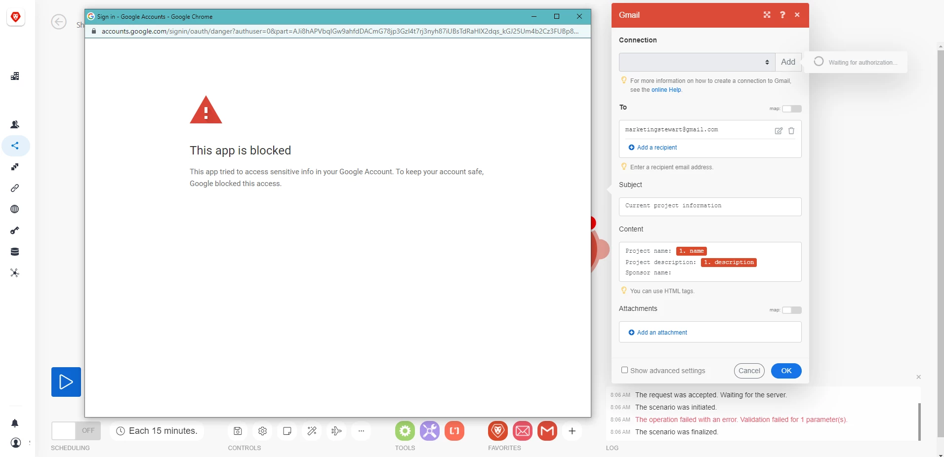Gmail Integration - "This app is blocked" (Adobe Workfront Fusion)