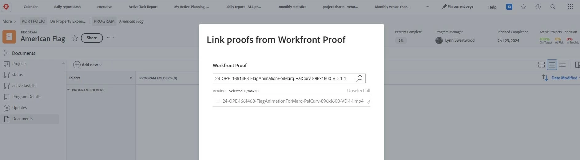 hello! I am trying to use the link a proof at the program level documents tab