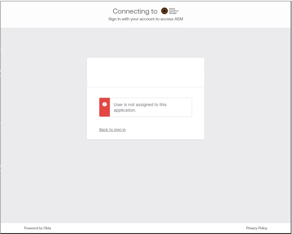 "User is not assigned to this application."