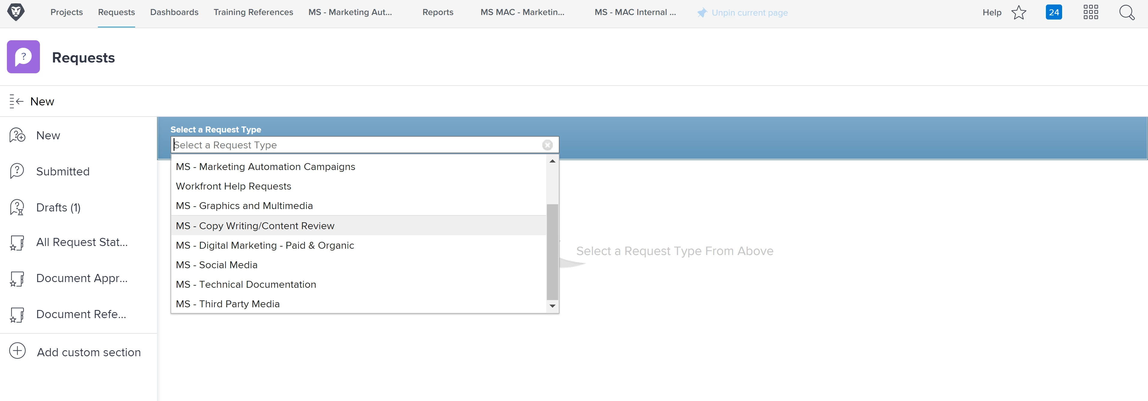 You actually have to create a "Project" and select the option "Publish as Help Request" in the Queue Details section. Not sure if you are using the new experience but the screen shot below is where to find it. (One thing to mention is the "Queue Details Section" may not be available depending on your Layout Template and those can be found/edited in the Set Up section. Good Luck! (Ignore my horrible screen shot, I was rushing 😅 )