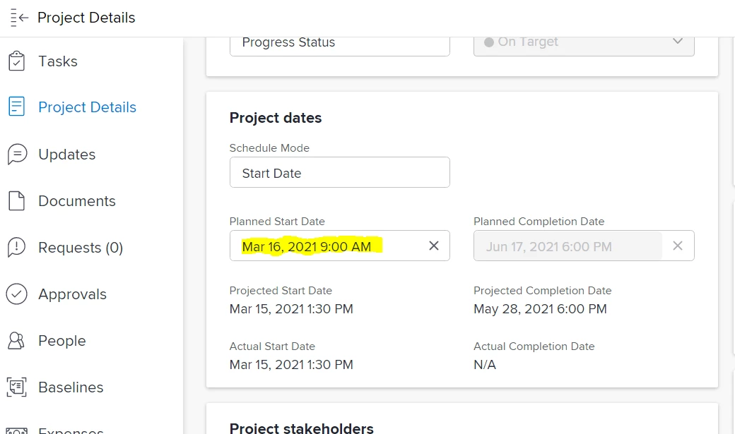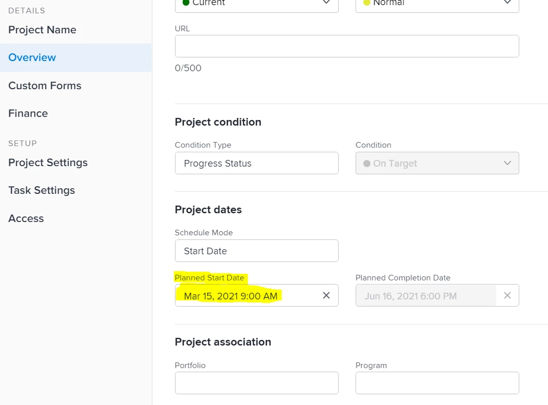 Hello! We are testing out the waters of switching our project templates Schedule Mode from Completion Date to Start Date. However, I cannot seem to figure out how to change the Start Date once you originally set the project up... Am I missing something?