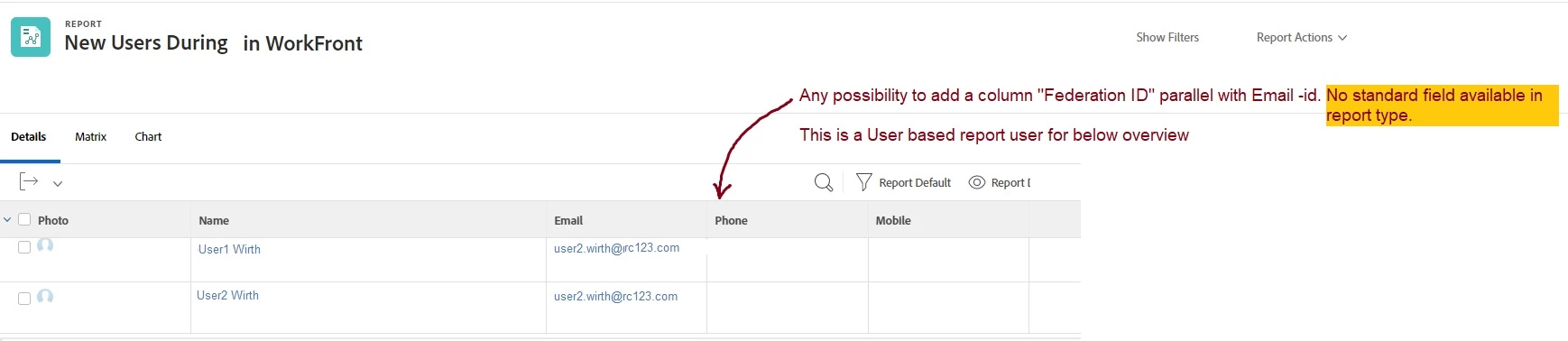 How to add "Federation ID" column in User Report?