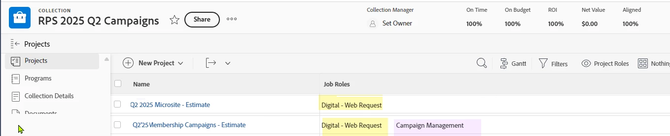 Sample: I want to create a view that does not bring these 2 projects in if they include this "web" team (and ultimately ability to stack to not include if specific teams are selected)