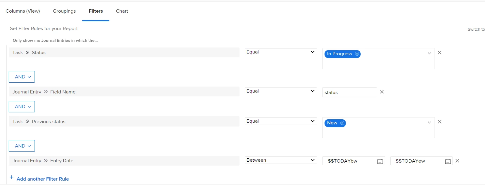 How to filter report based on task status change date?
