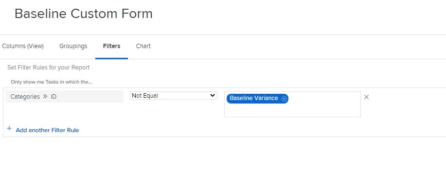 Hi Catherine. If you are looking to see tasks that are missing a particular custom form, you can create a task report/filter and use Categories > ID and then Not Equal to "Form Name". Using the Categories (plural) will search all custom forms attached - rather than just the first. If you are wanting to see tasks without any custom forms attached, you can use Categories > ID Is Blank. Hope this helps!