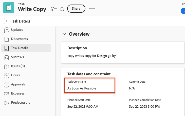 What I'm looking for is a way to reset the "Due On" field to auto-update based on the predecessor that's been assigned.