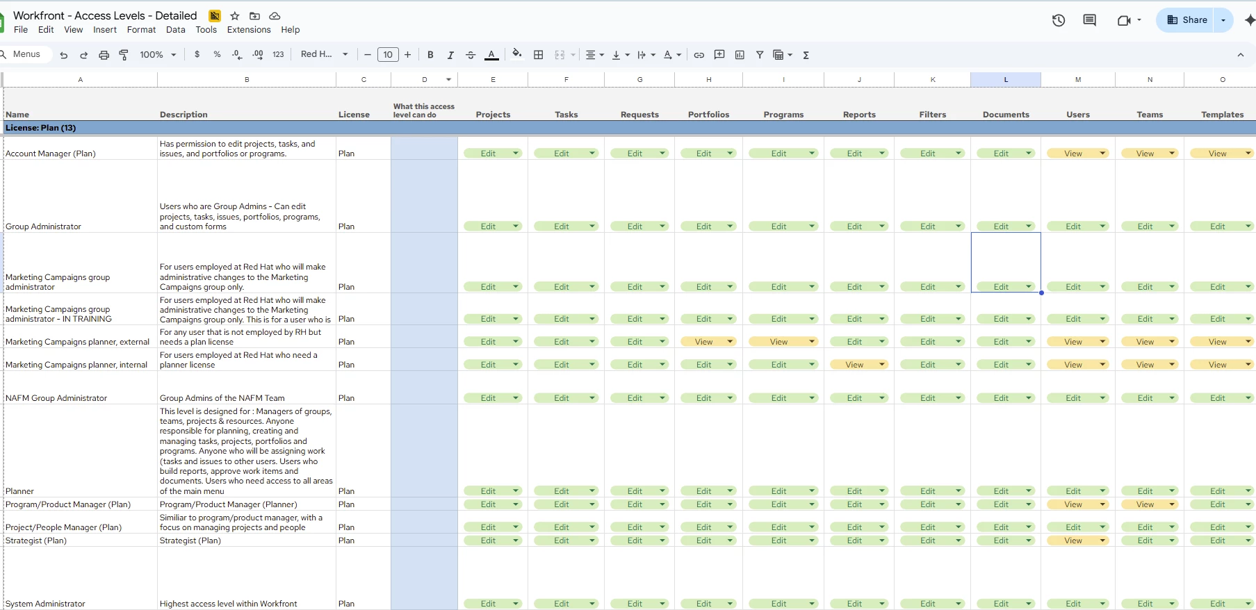 We currently have a streamlined process (aka intake form) for new users who need access to Workfront. We utilized the Adobe admin console and are aware of the auto provision feature. We currently have 24 active access levels, numerous layout templates, home groups, etc. We are looking to streamline how to assign the correct access levels, layout template, etc. to a new user. We ask the user if there is an existing user that we can mirror them after, and that helps in some cases. As our instance has grown larger (2,000+ users). We are finding it more challenging to set up users with what they need the first time. There ends up being trial and error and some back and forth between new user and the primary system admin. We have created a detailed google sheet outlining what each access level can do and have considered adding in group admins to review suggested access levels but have learned that there are really only a few people in our organization who understand Workfront access levels. We don't want to present the detailed view to a new user, because we know it would overwhelm/confuse them. See attachment below. We can make our manual process work for now because on a typical day we are setting up approx. 5 new users a day. When we scale in the future and are getting 20 to 40 new user requests a day, we will need to have a more efficient process.