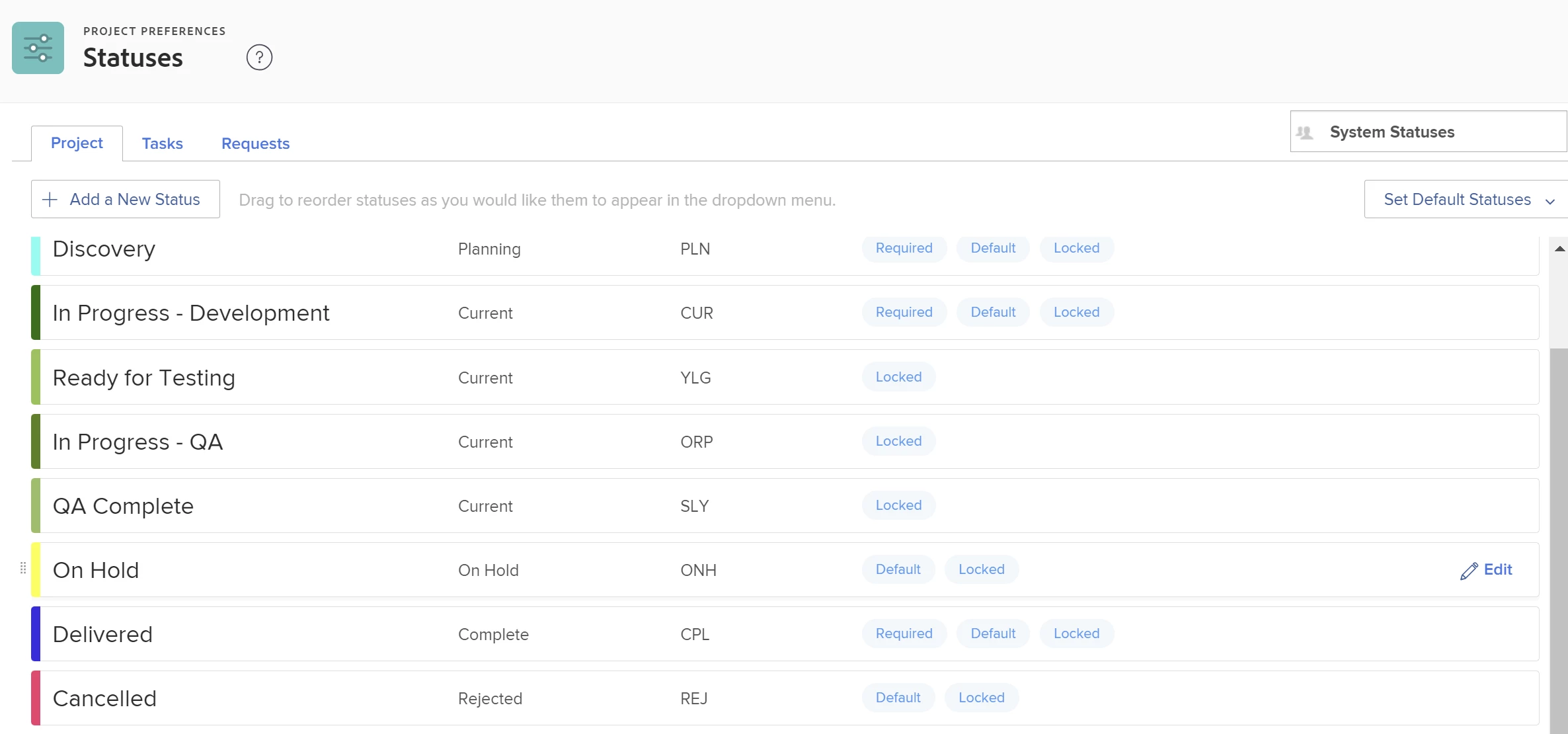 Ideally, I would like to move the last two items somehwere in between and have 'Delivered' and 'Cancelled' in the bottom.