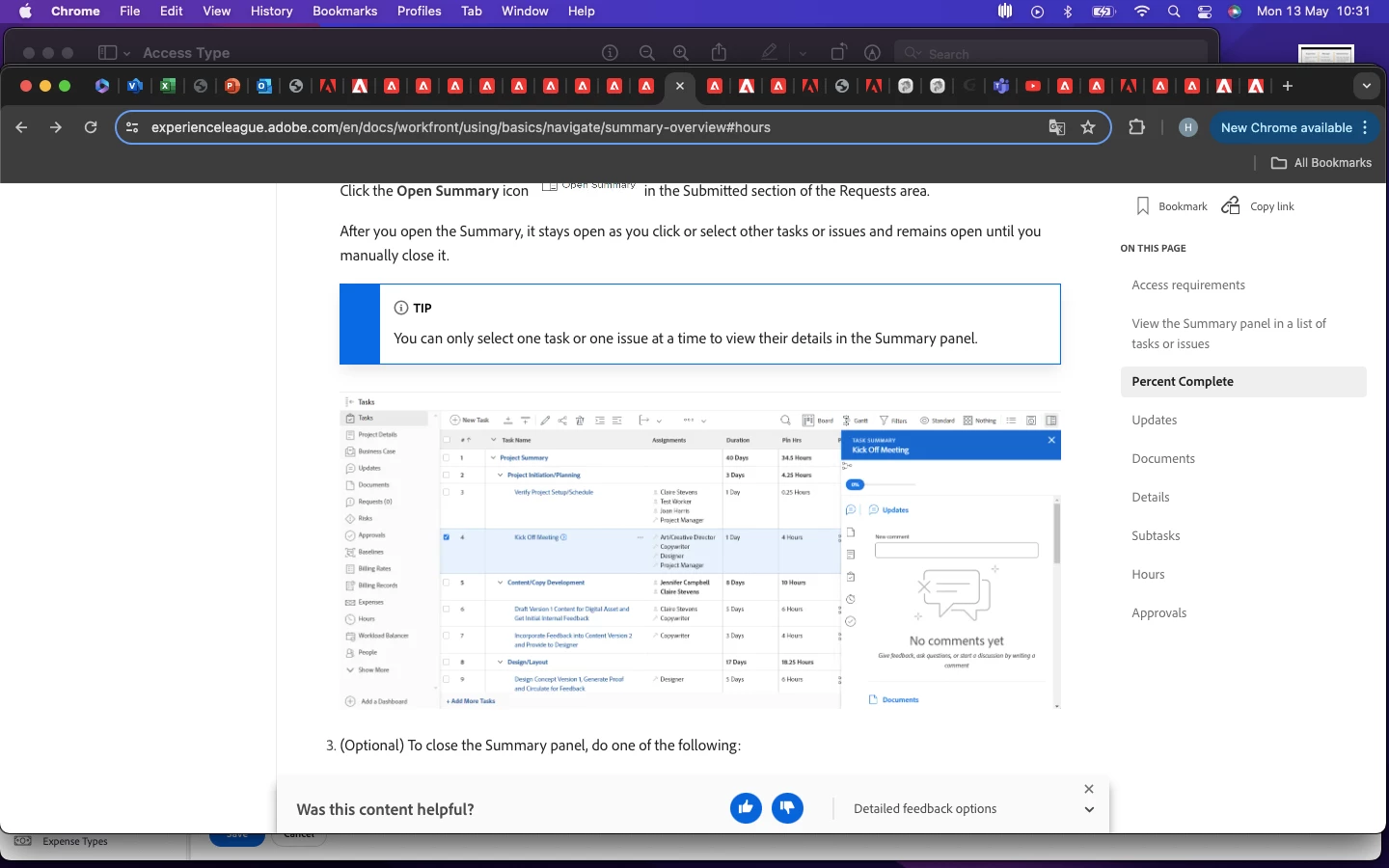 how to turn on option hours in task summary