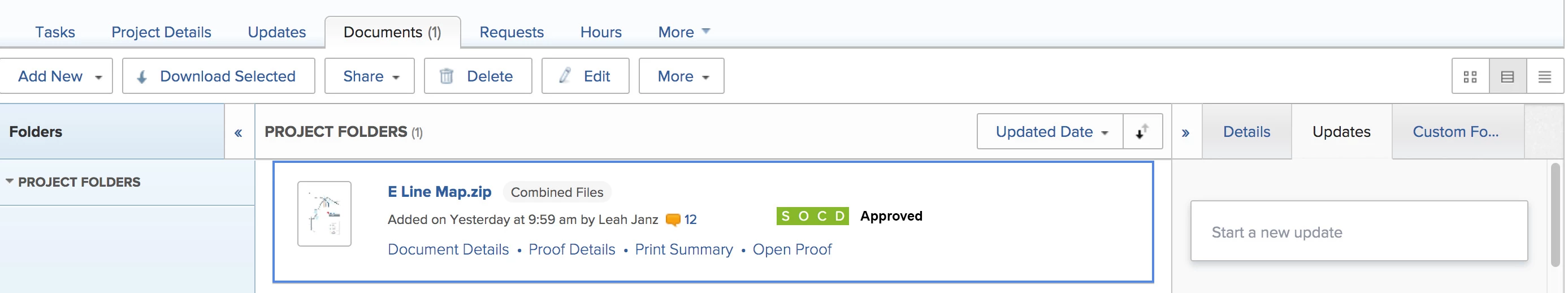I just put up an idea about including the actual decision made on a proof in the documents tab view without clicking into details. In the documents tab, it shows if a proof has been sent, open, commented on and if a decision has been made. But it doesn't show WHAT the decision is. Was it approved? Or are changes required? You have to click into details to find out. It would be great if the decision could be shown right there with the document information without clicking on anything. https://experience.workfront.com/s/idea/0870z000000XhTpAAK/detail Leah Janz Metro Transit