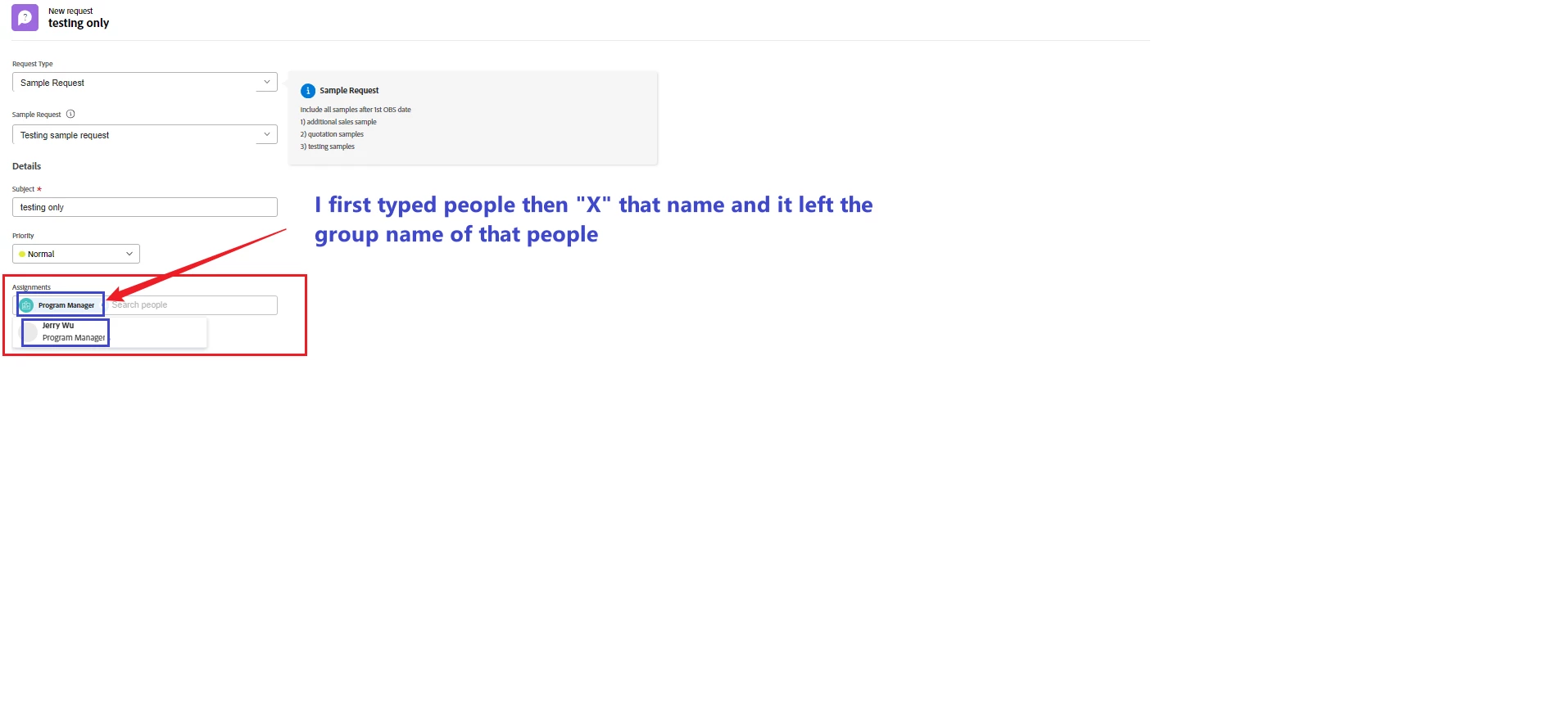 1. I can make assignment to one people, but cannot to a group