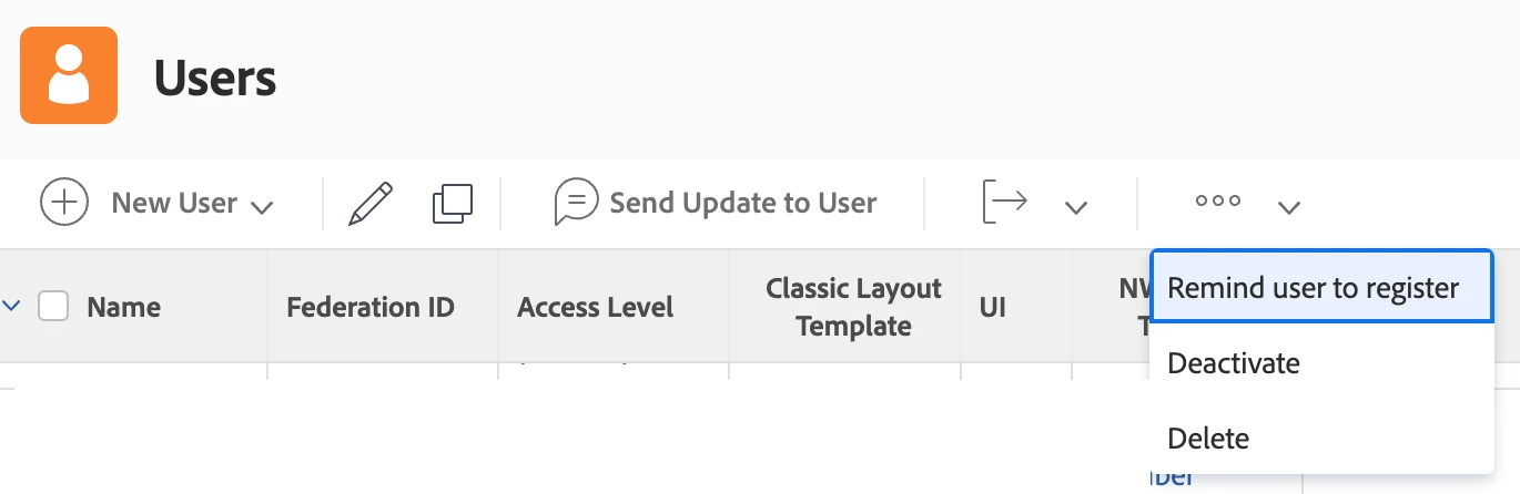 The easiest way I've found is if you navigate to the Users list and select the person's account. From there you can select Remind user to register from the more menu. This only works for users with Unregistered icon next to their name.