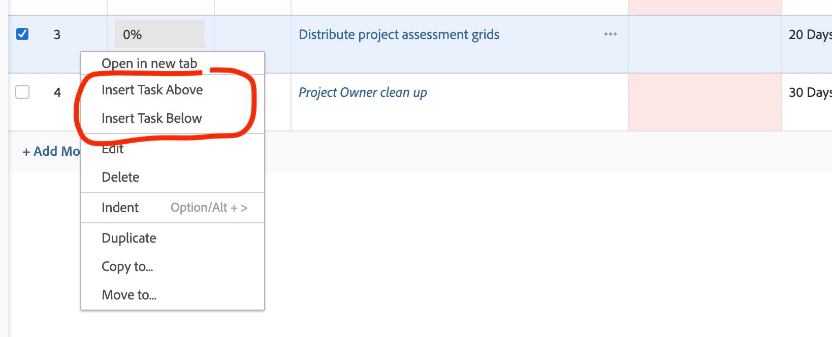 Currently when I insert a new task, the task appears at the bottom of the task list / project plan. And I have to manually move it to the desired location.