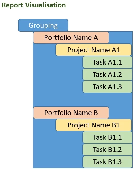 Hi there, the text mode I sent is only for the 1 grouping of portfolio name. As I said in a couple responses, you need another grouping for project, what I provided above was just for the portfolio grouping. I've gone ahead and built it out more for you to use this: