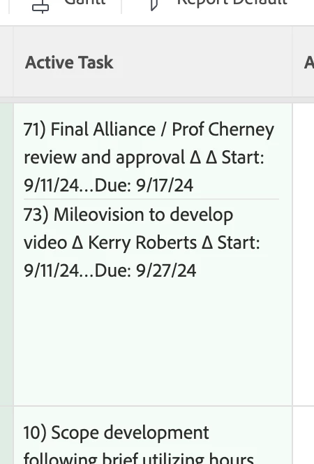 Is there a text mode (for a project report) that will show you the next task ready to worked on?